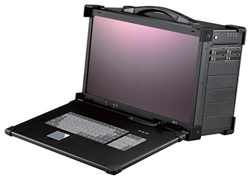 The Apollo-A3 model is a robust all aluminum construction lunchbox portable computer. This unit can handle ATX and Extended ATX motherboards offering Dual CPU capability. The Apollo-A3 is truly a portable server due to the case design being able to accommodate most motherboards from all manufacturers. This portable chassis offers (6) 51/4 bay drives for ultimate storage. This lunchbox computer is designed for harsh environment operations suitable for mission critical applications. The Apollo-A3 comes in a 21.5 inch 1920x1080 LCD display. It comes equipped with built-in amplified speakers.