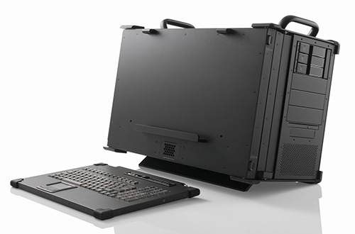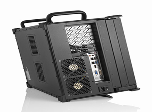 The Apollo-A7 is a three screen portable computer in a standard-atx format mainboard setup offering 7 full length slots for your proprietary cards. This unit is built using heavy duty metal ideally suitable for field use plus industries such as gaming and video development applications. Every Apollo-A7 portable pc offers three high resolution 23" 1920x1080 resolution LCD displays, dual system cooling side fans and easy access to its expansion ports for immediate system upgrade or maintenance. The Apollo-A7 with its extra-rugged construction to sustain bumps and impacted blows is the most cost-effective, durable and efficient portable solution for your needs.